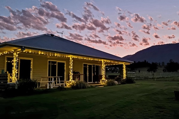 Fig Tree Farm Stay Near Brisbane. The cottage patio is lit by fairy lights at night!